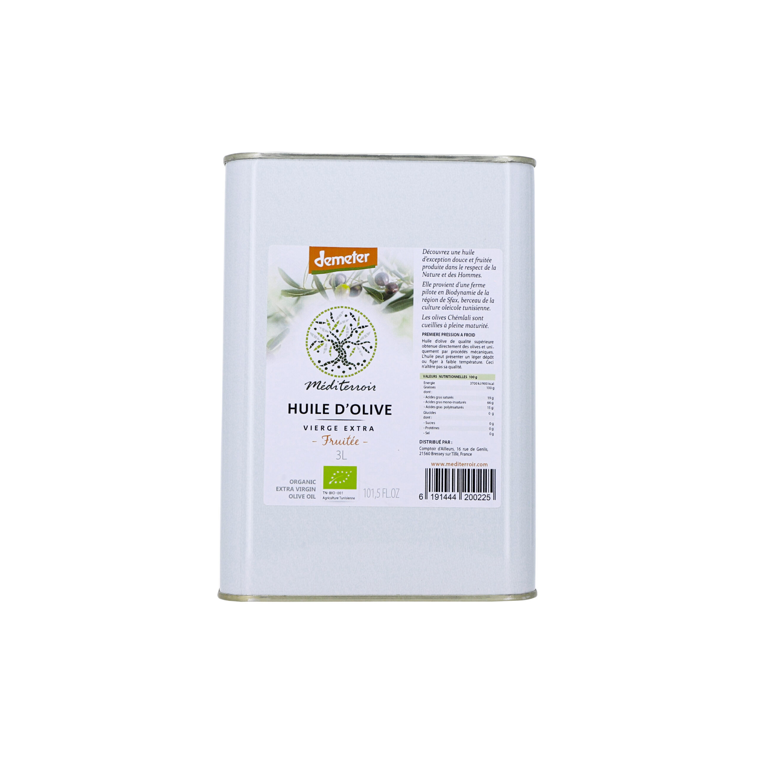Méditerroir to marka oliwy z rodzinnego gospodarstwa ekologicznego w Tunezji, gdzie od wielu pokoleń kultywowana jest sztuka i tradycja uprawy drzewek oliwnych oraz tłoczenia oliwy. Mediterroir posiada certyfikat upraw Demeter, była też pierwszą marką w Tunezji, która otrzymała certyfikat pochodzenia IDP Indication de Provenance. Oliwki zbierane są ręcznie, i jeszcze tego samego dnia tłoczone w celu uzyskania najwyższej jakości oliwy.